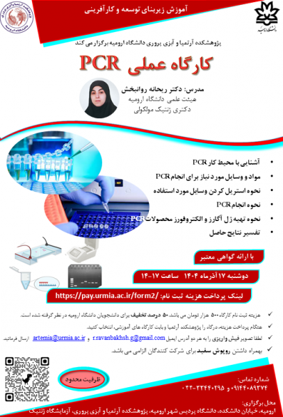 برگزاری کارگاه عملی PCR توسط خانم دکتر ریحانه روانبخش در تاریخ 17 آذرماه ساعت 17-14